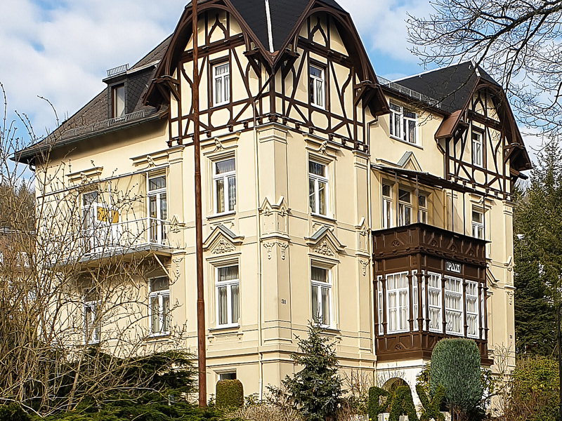 Die Hotel-Pension und Ferienwohnungen liegen in ruhiger, zentraler Lage im historischen Kurpark von Bad Elster.