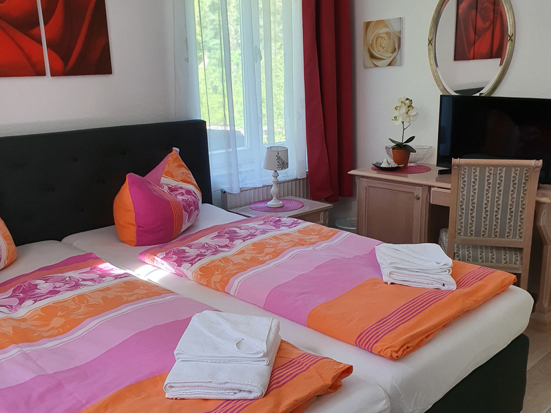 Im Haus sind für die Gäste vier Zimmer zu mieten. Das garantiert Ihnen Ruhe und Erholung. Dazu trägt auch die Lage in Waldnähe bei. Dennoch liegt unsere Pension noch im Stadtkernbereich von Bad Elster.