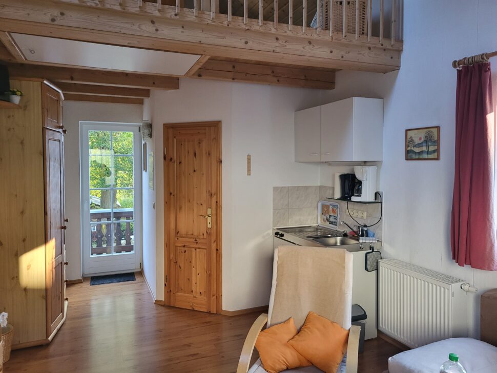 Ruhige Lage in weitläufigen Garten, PKW Stellplatz am Haus, ebenerdig, 1 Schlafzimmer, 1 Wohn- Esszimmer, Tageslichtbad, Küchenzeile, Terrasse mit Grillplatz, Haustiere willkommen