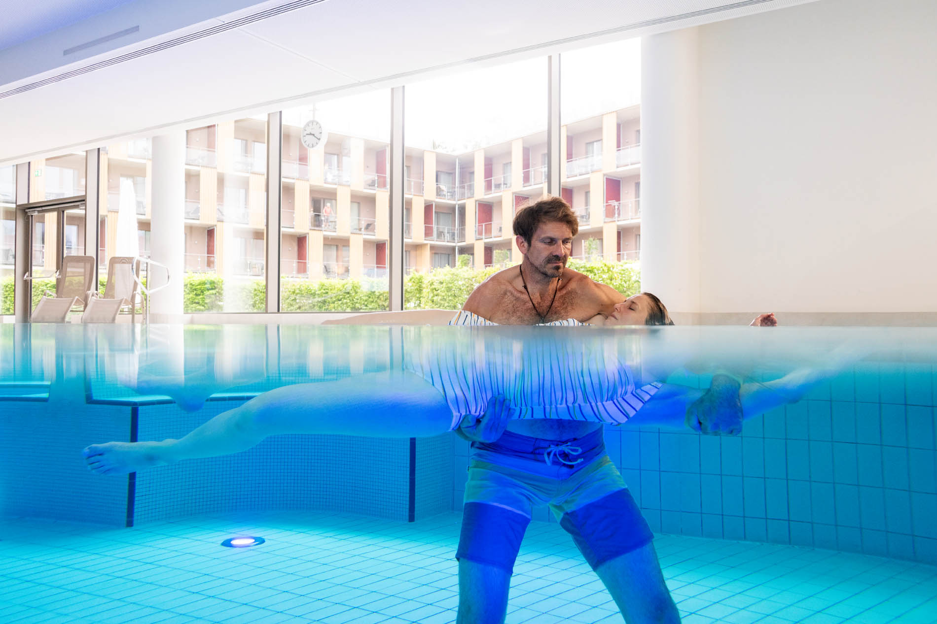 Fühlen Sie Ihren Körper, spüren Sie den Auftrieb der Sole und finden Sie zur inneren Ruhe. Unser professionelles Team unterstützt Sie mit gezielter, entlastender Lagerung und fachkundigen Therapiegriffen. Wir zeigen Ihnen den richtigen Weg zur Entspannung und begleiten Sie mit verschiedenen Schwebhilfen tief in die Entspannung.