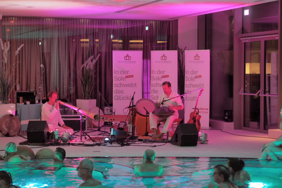 Wir laden Sie ein zu wohliger Tiefenentspannung beim schwerelosen Schweben mit Live-Musik. SoleMove Trainer Oliver Möhwald und sein Team entführen Sie in eine traumhafte Welt aus Klang und Licht in warmer Sole.